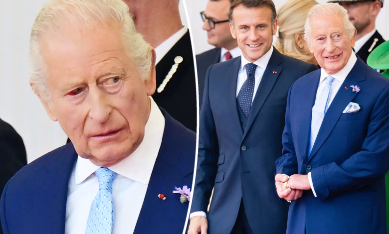 Photographs showing the monarch’s red eye were taken as he and President Macron attended a ceremonial event with the Royal Guard. Queen Camilla and France’s First Lady, Brigitte Macron, were also in attendance.