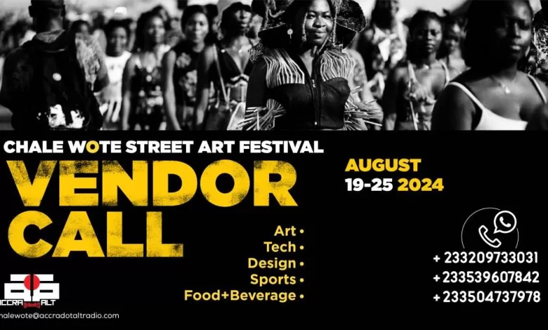 The organizers of the Chalewote Street Art Festival, Accra Dot Alt, have announced a call for vendors to register for the 2024 edition, scheduled to take place from August 19-24, 2024. People in the fields of art, technology, design, sports, and food beverage are supposed to call the organisers on 0209733031, 0539607842 and 0504737978 to make their bookings ahead of time.