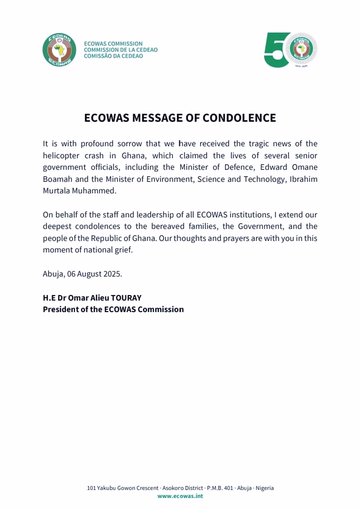 In an official statement, ECOWAS leadership and staff extended heartfelt condolences to the families of the deceased, the Government of Ghana, and the Ghanaian people. The statement emphasized that ECOWAS stands in solidarity with Ghana during this period of national mourning, offering its thoughts and prayers.